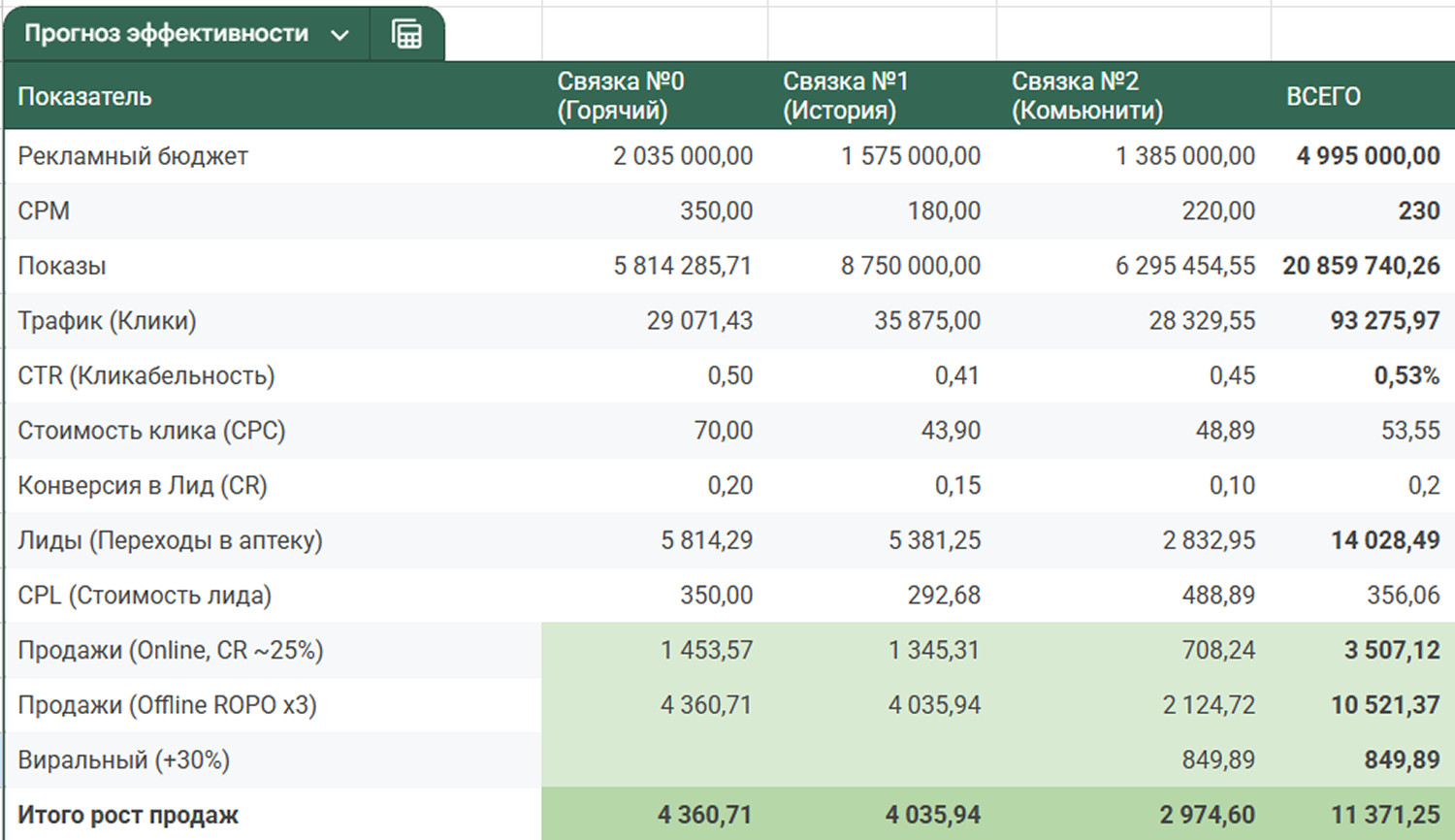 Онлайн-стратегия по прогнозу даст прирост офлайн-продаж в аптеках в х3 к онлайн-заказам"Схема легко масштабируется: после запуска и наведения порядка в аналитике можно увеличивать объёмы, сохраняя плановую стоимость клиента. Комплексный подход, объединяющий доработку сайта, экспертный контент и социальные механики, обеспечит кратный рост продаж не только в интернете, но и на полках обычных аптек.