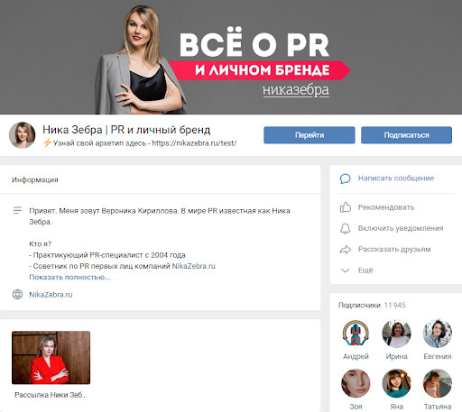 Примеры отличного оформления личного бренда во ВКонтакте: