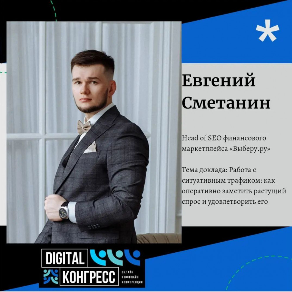 Приглашаем вас 8 декабря на Digital Конгресс, который пройдет в онлайн-формате. Эксперты поделятся актуальными решениями и кейсами интернет-маркетинга. Доклад Евгения Сметанина в 11:00 — не пропустите!