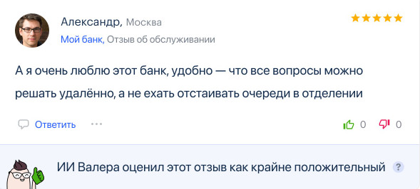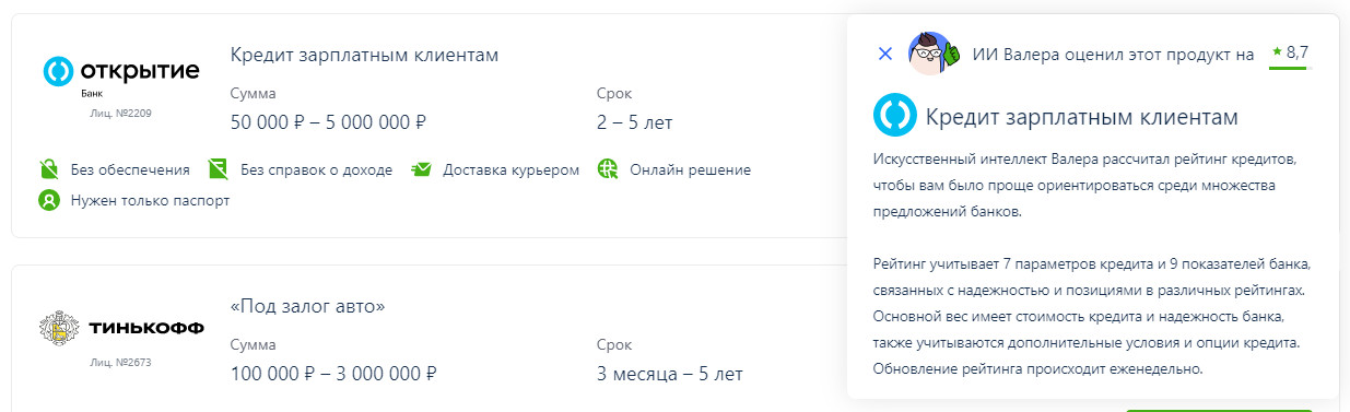Все эти банки представлены у нас на сайте, целевая аудитория та же — так что мы не побоялись быть неправильно понятыми. Идея назвать наш искусственный интеллект Валерой сразу же совпала с отраслевым трендом. С именем связано много забавных ассоциаций, как минимум пара мемов. Без сомнений, Валера, настало твое время!