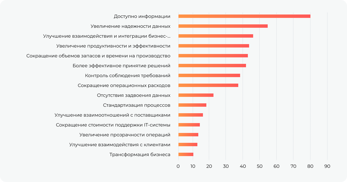 - Оптимизация бизнес-процессов, увеличение их прозрачности и усиление контроля.