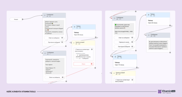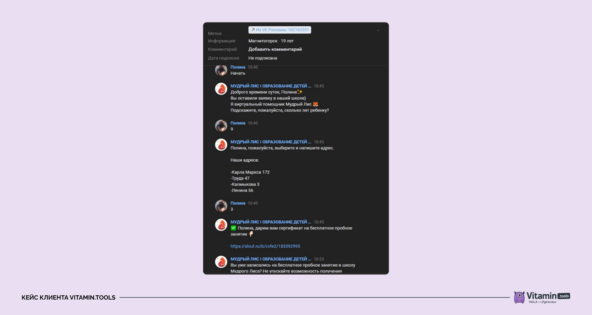 Если реакции не было, бот не давил. Через заданное время включался повторный шаг — мягкий прогрев. Вся цепочка строилась так, чтобы не перегружать, но напоминать. А раз в месяц запускали рассылку: короткое сообщение по болям родителей. Это хорошо дожимало тех, кто когда-то интересовался, но не дошёл до анкеты. Пересобрали воронку — от сбора первого контакта до записи на пробное занятие. Для этого мы шаг за шагом выстроили связку из рекламных креативов, посадочных страниц, прогревающих сценариев и финального предложения. Лид-форма: лиды дороже, но качественнее. Мы использовали подход с предельной ценой: устанавливали ставку в 5–10 раз выше средней цены лида и поднимали дневной бюджет в 1,5–2 раза. Форма давала качественные заявки, но срабатывала только при выполнении нескольких условий: — аудитория от 20–50 тысяч человек, — уже проверенная связка креатива и оффера, — высокая ставка и дневной бюджет (в 5–10 раз выше средней цены лида). На холодные гипотезы лид-форму не ставили. Она просто не успевала обучиться и начинала сливать бюджет. Пример объявления с лид-формой: Бот: дешевле, но вовлекает. Основная работа велась через бота, встроенного в группу ВКонтакте. Это был виртуальный помощник, который ненавязчиво и с заботой предлагал разобраться, подойдёт ли школа ребёнку. Мы не просили родителей сразу оставить номер телефона. Сначала — задавали пару простых вопросов: про возраст и интересующее направление. Потом предлагали записаться на пробное занятие. Если человек не реагировал, бот напоминал о себе через три часа. Таким отложенным сообщением мы решали одновременно две задачи — возвращали тех кто отвлёкся и привлекали внимание тех кто пока не знает какое направление выбрать. В этом сообщении бот предлагал альтернативный вариант — можно записаться на диагностику и выбрать направление после бесплатной консультации от педагога. По сути, это то же бесплатное занятие, но в другой упаковке. Во время занятия педагог оценит уровень знаний ребёнка и подберёт оптимальную для него программу. Такой подход давал родителю ощущение контроля: его не торопят, с ним не спорят, просто предлагают удобный путь. И это работало. Часть заявок доходила до занятия без участия менеджеров — всё закрывал сам бот. Бот задавал простые вопросы — сколько лет ребёнку, умеет ли тот читать. Эти вопросы не вызывали отторжения — они звучали как забота и персональное внимание. На основе ответов бот предлагал записаться на пробное занятие. Как это работает: Родитель видит общую рекламу, общие вопросы, общую анкету и может понять что ему действительно интересно. Родители вовлекались в диалог. Они хотели узнать побольше о школе и записать ребёнка на бесплатное пробное занятие. Решение принималось внутри диалога, без давления. После того как родитель узнал всю важную информацию. Почему это работает: каждый шаг — логичное продолжение предыдущего. Человек уже вовлечён. Он уже получил первичную информацию и ему проще записаться. Сценарий чат-бота: Родитель сразу видит стоимость абонемента и расписание занятий. Если у ребёнка уже есть другие секции, родитель может соотнести графики и понять, будет ли время для дополнительных занятий. Аналогично с ценой — узнав стоимость абонемента, родитель может соотнести свои финансовые возможности. Почему это работает: Холодная ауд