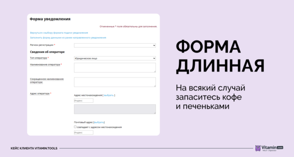 Заказчик получил официальный запрос от Роскомнадзора. Кинулись собирать документы, а показывать нечего. Нет ни регистрации как оператора персональных данных. Ни чекбокса под формой. Таблица с заявками лежит в общем доступе. Доступ к базе есть у подрядчиков, с которыми даже договор не подписывали. Данные пересылали в рекламные системы — без согласия и поручения.