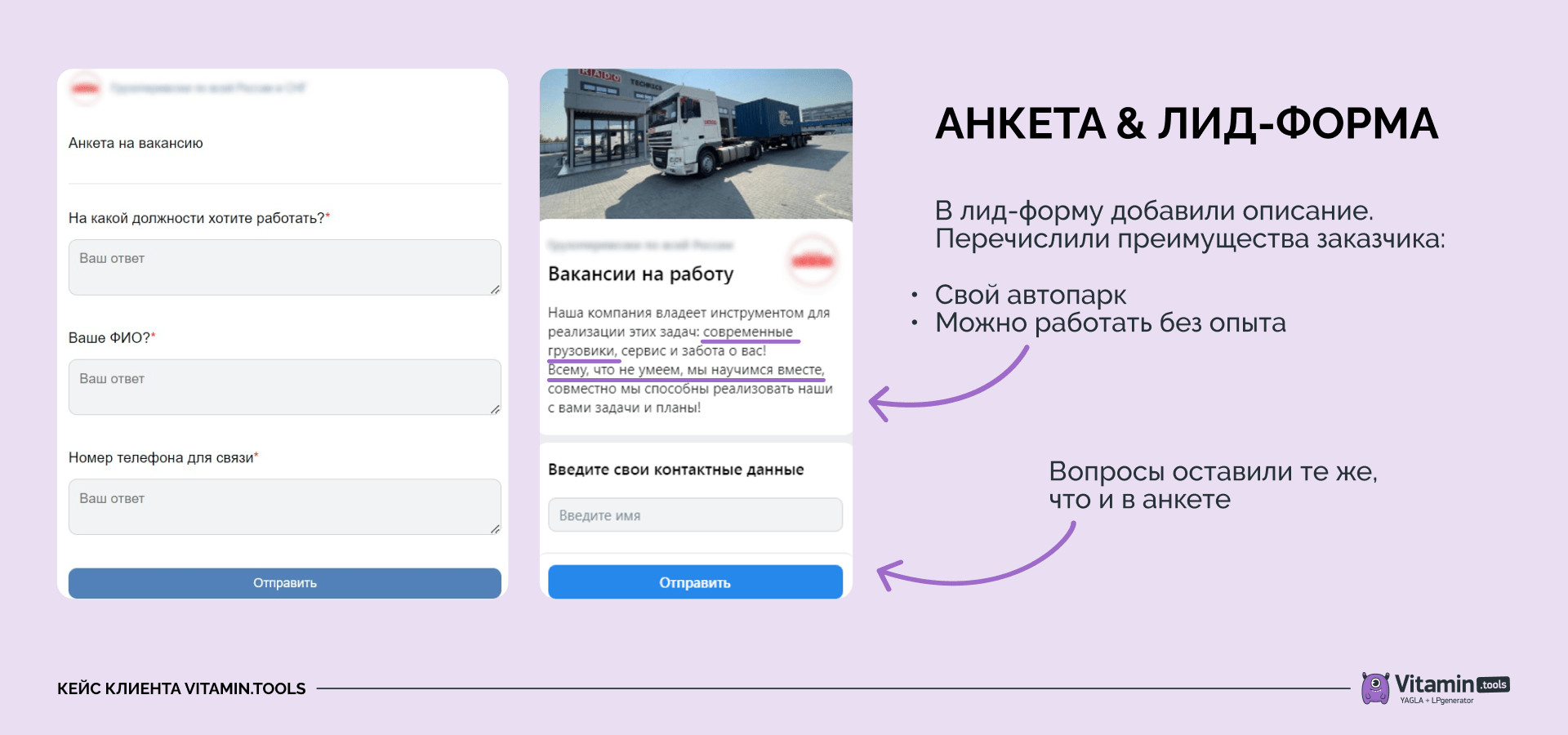 - Перенаправить трафик на форму отклика. Использование анкет и лид-форм упростило бы воронку продаж и сократило путь пользователя. Мы выбрали именно этот способ.