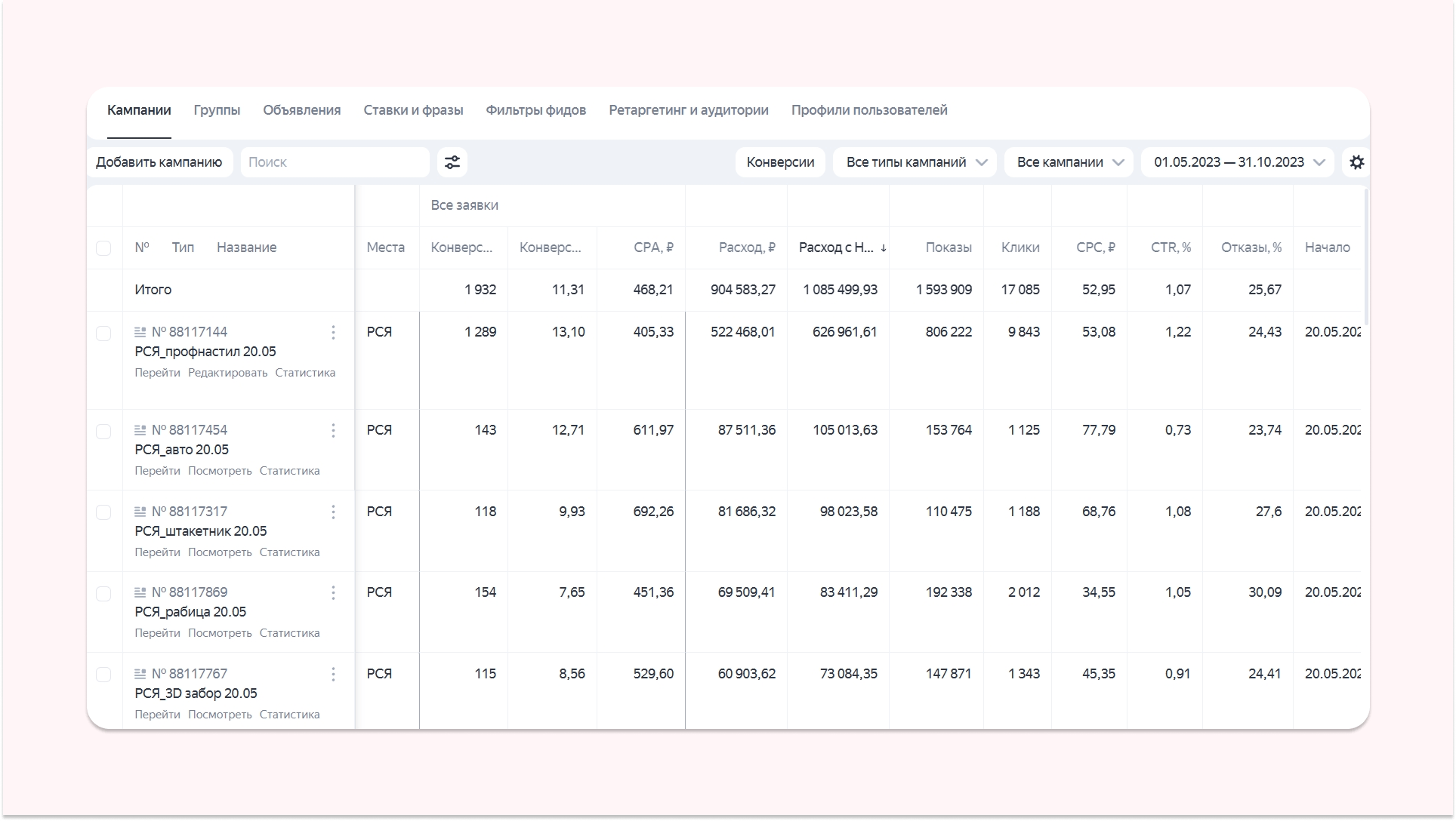 В этом кейсе я поделюсь своими наработками на примере проектов, которые вёл в течение 2023 года. С некоторыми заказчиками я работаю несколько лет, с другими — с этого сезона. Хотя были и те, кто после первого же месяца работы, не смогли переварить количество входящих заявок и попросили притормозить рекламную кампанию или вообще остановить лидген. Например, один заказчик, ставивший KPI в 50 заявок в день, снизил его до 30 заявок, так как не успевал обрабатывать входящий поток.