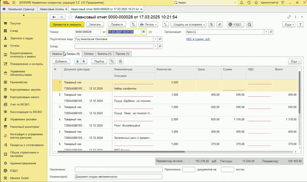 Как автоматически создать в 1С авансовый отчет на основании заявки КЭДО