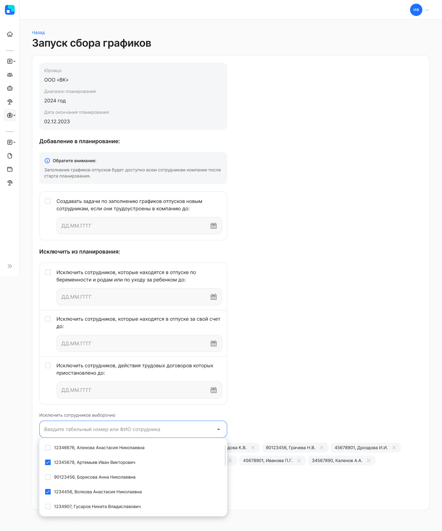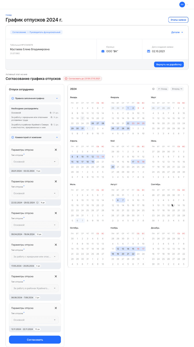 Кейсы составления графика отпусков в VK HR Tek