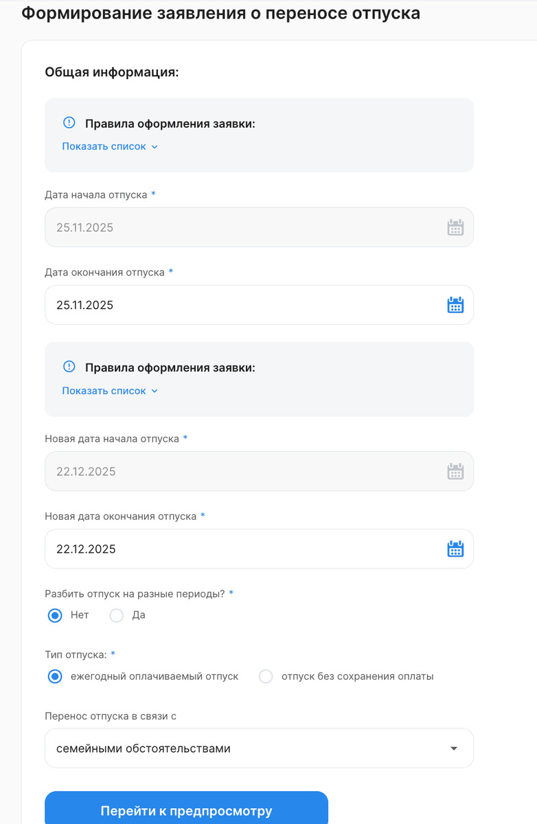 После сбора заявок руководитель подразделения сводит данные, выявляет пересечения и при необходимости договаривается с работниками о переносе дат, чтобы сохранить баланс между интересами специалистов и производственными задачами.