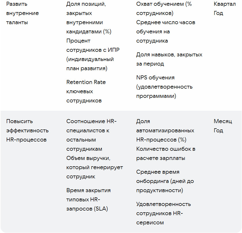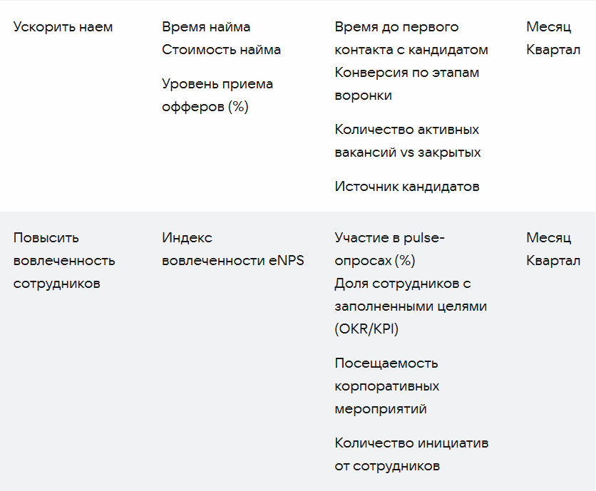 Шаг 2. Определите HR-метрики, связанные с целью.