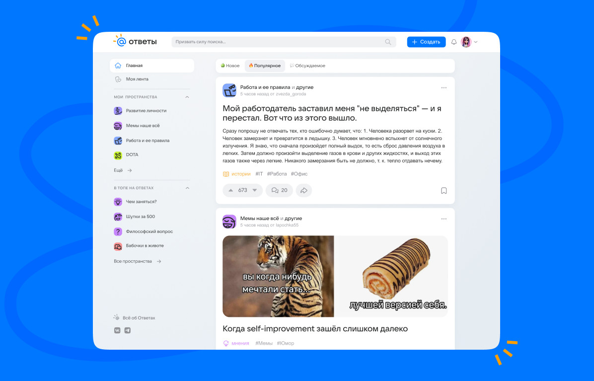 Поисковые сервисы и нейросети совершенствуются в точных ответах, но одновременно растёт и востребованность обратной связи от реальных людей. Пользователи стремятся не только к правильным, но и к человечным Ответам: разнообразию мнений, живому опыту, поддержке и сопереживанию. Именно люди делают Ответы пространством для настоящего общения,