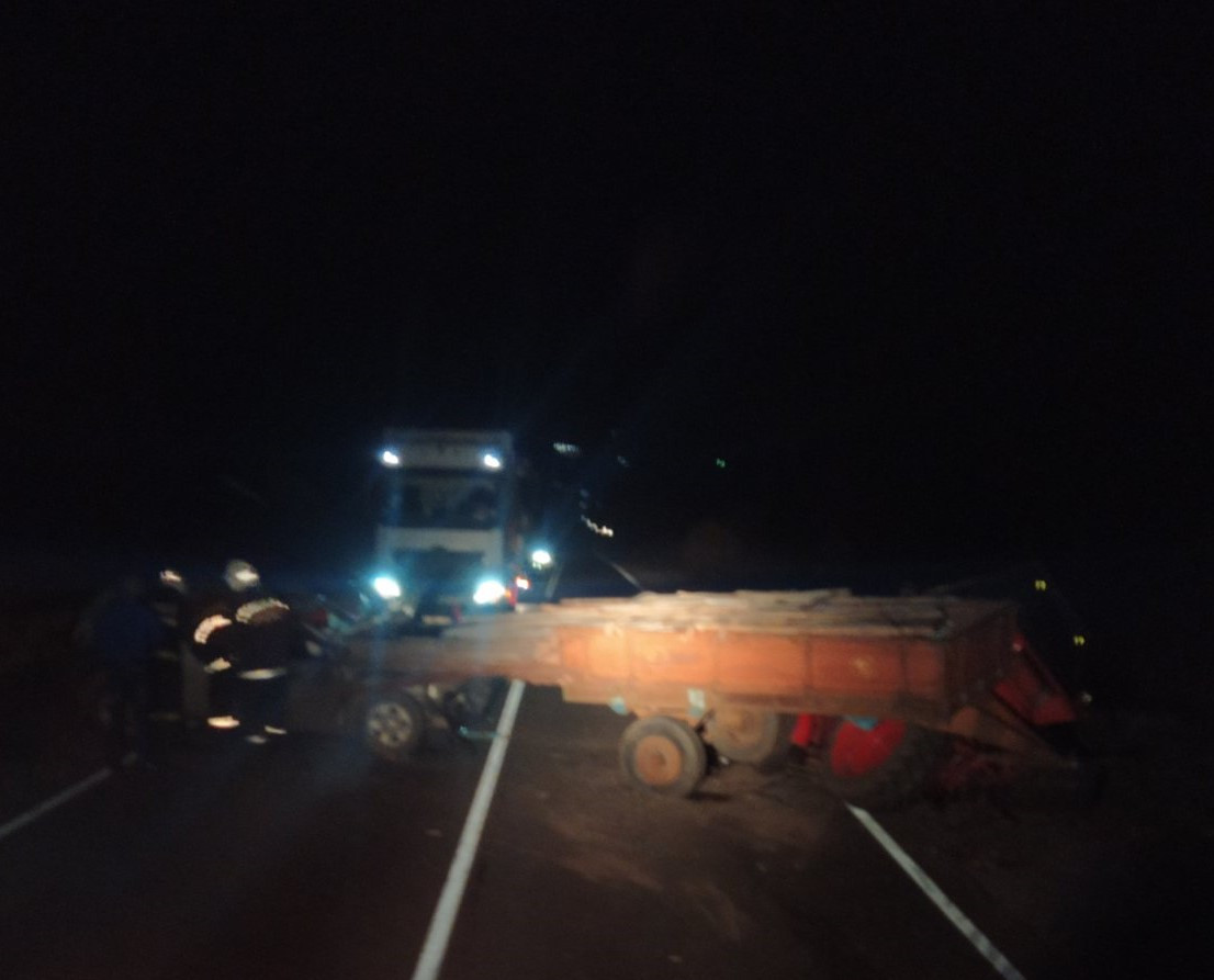 под управлением ........ с задней частью тракторной телеги где выступал