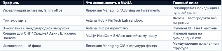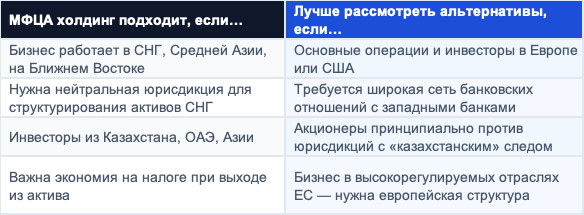 Итог: кому подходит МФЦА