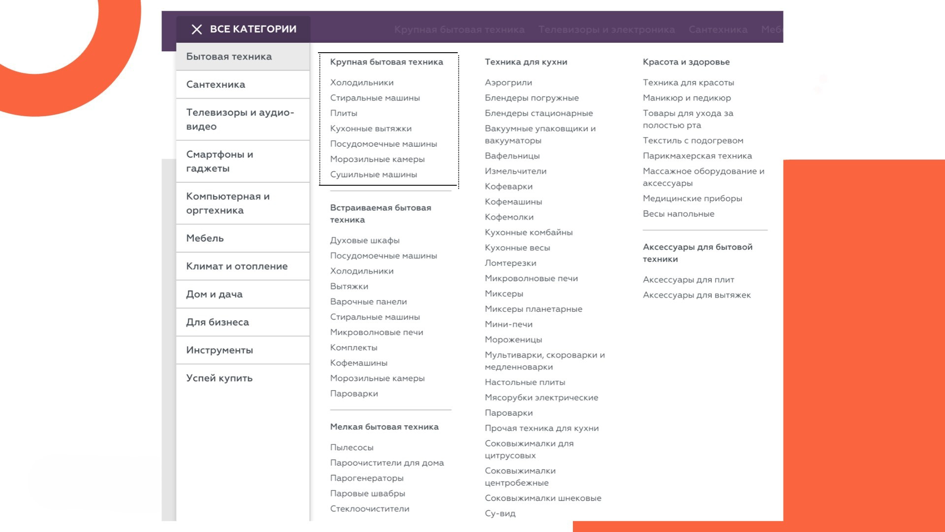 После подробного аудита и сбора широкой семантики по основным вертикалям онлайн-гипермаркета (более 10 тыс. запросов) мы продолжили оптимизировать листинги и шаблонизировать теги. Помимо стандартизированных задач мы выделили несколько приоритетных: