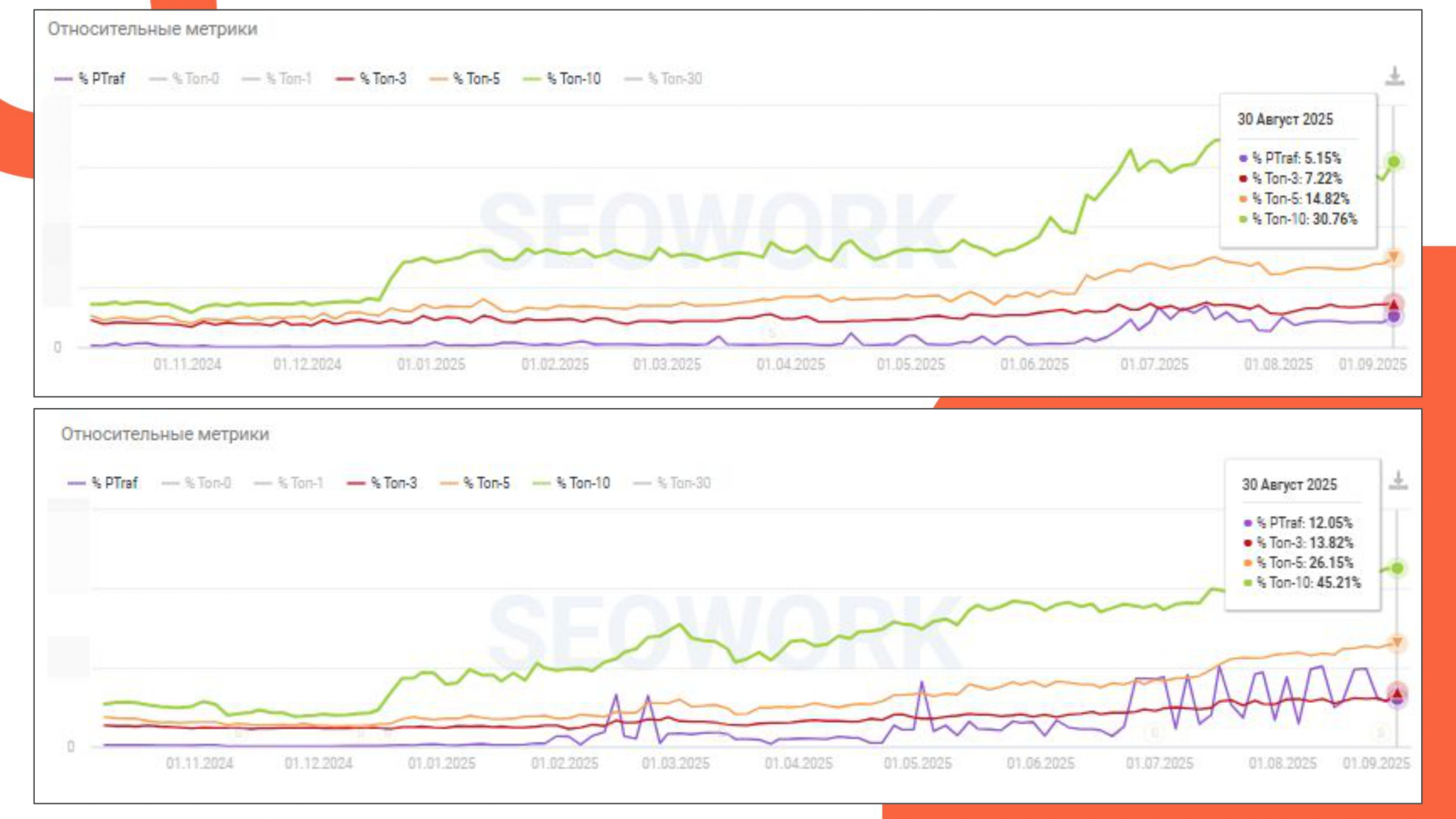 После внедрения всех доработок органический трафик раздела «Каналы» начал стабильно расти и в Яндексе, и в Google. Отметим, что рост достигнут без внешних ссылок, только за счет внутренней оптимизации и проработки контента. Особенно заметный рост наблюдается с апреля 2025 года — в этот период мы расширили семантику и добавили новые запросы. Этот проект подтвердил: потенциал роста часто скрыт в уже существующих страницах. Главное — увидеть возможности, правильно собрать данные и последовательно воплотить их в доработках. Результат впечатляющий: в сравнении с 2024 годом небрендовый трафик вырос более чем в два раза в обеих поисковых системах. Рост в Яндексе составил 281%, в Google — 51% год к году. Работа с информационным трафиком дает бренду не только цифры, но и стратегические плюсы. По сути, грамотная работа с небрендовыми запросами превращает информационный раздел в мощный инструмент роста органики. Информационный контент — не второстепенный. Даже если основная цель сайта — продажи, именно информационные страницы часто становятся точкой входа для новой аудитории. Рост без ссылок возможен. Внутренняя оптимизация и грамотная работа с семантикой способны дать значимый результат без внешнего продвижения. Шаблоны ускоряют масштабирование. При большом объеме страниц важно найти баланс между автоматизацией и ручной проработкой. Шаблонные решения помогают быстро внедрять улучшения, а точечная оптимизация закрепляет эффект. Аналитика — ключ к приоритетам. Сбор данных из разных источников (Wordstat, Search Console, Метрика) помогает не тратить ресурсы вслепую, а концентрироваться на страницах с наибольшим потенциалом роста. Контент = репутация. Когда бренд помогает пользователю разобраться, он укрепляет доверие. Этот кейс показал: чтобы SEO действительно работало, нужно мыслить шире, чем позициями и кликами. Важно видеть стратегию — где и как сайт может быть полезен. Когда контент создается с пониманием потребностей пользователя, а оптимизация становится не самоцелью, а инструментом, результат масштабируется и в цифрах, и в восприятии бренда пользователями.