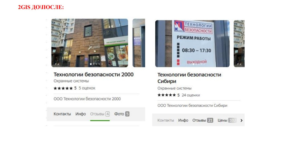 репутация в гео-сервисах. Яндекс-Карт не было совсем, а на 2ГИС активность была