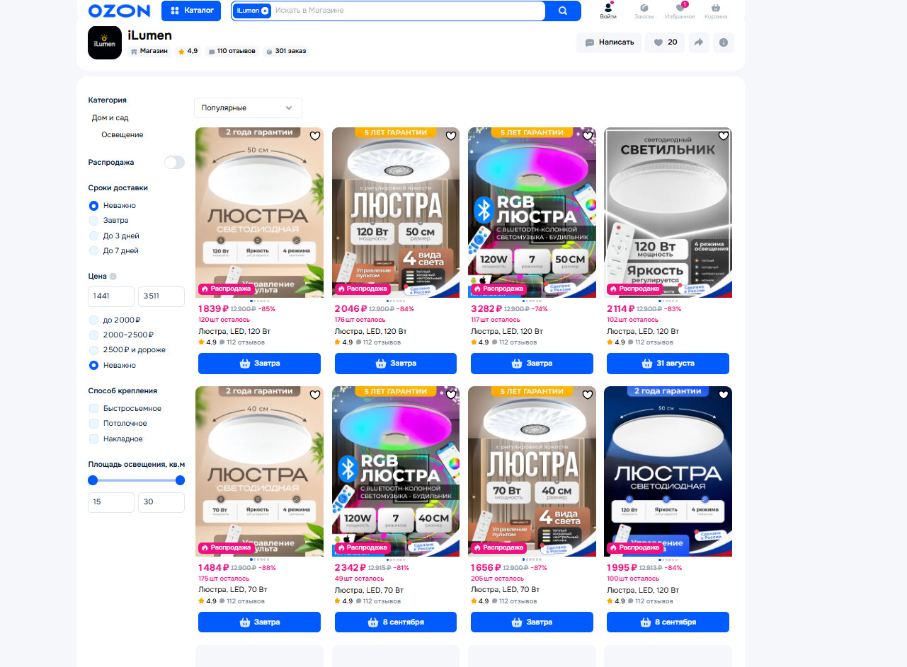 сезонность. Прямо сейчас на рынке люстр как раз начинается сезон. Эффективнее и прибыльнее заходить на маркетплейсы, если у