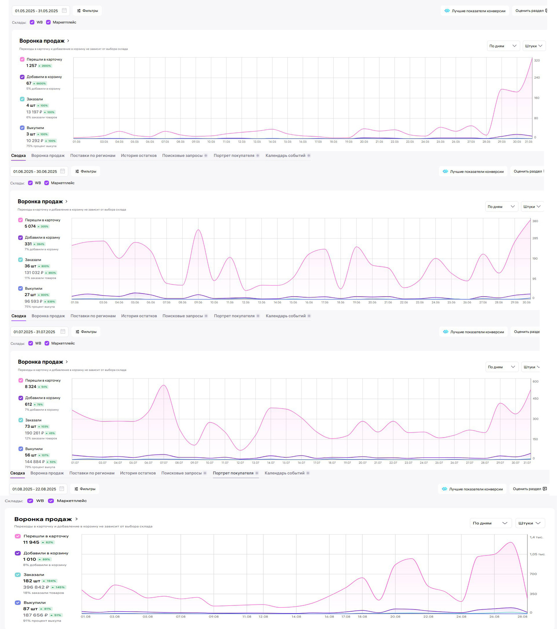 — оформление и оптимизация карточек (начали с 10 позиций);