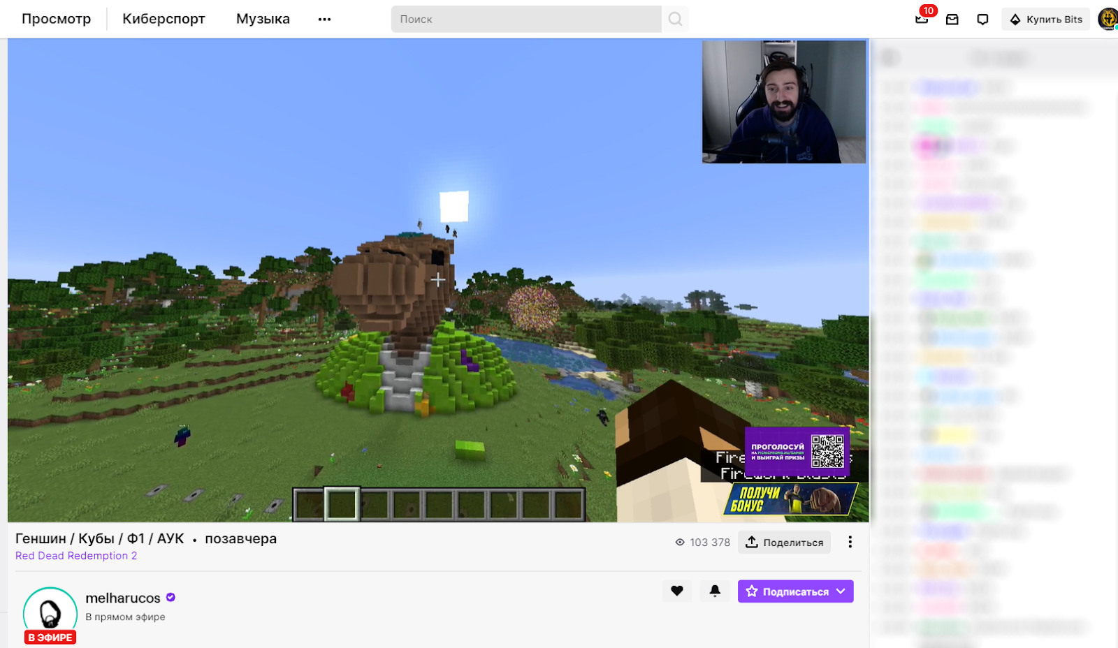 4,24 млн просмотров стримов со строительством в Minecraft на YouTube;