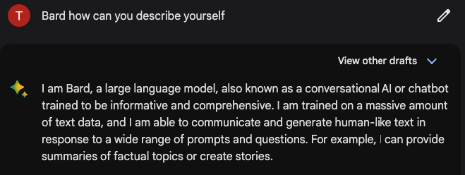 Bard — экспериментальный чат-бот от Google. Единственное отличие от всеми полюбившегося ChatGPT — это то, что Bard получает информацию напрямую из интернета.