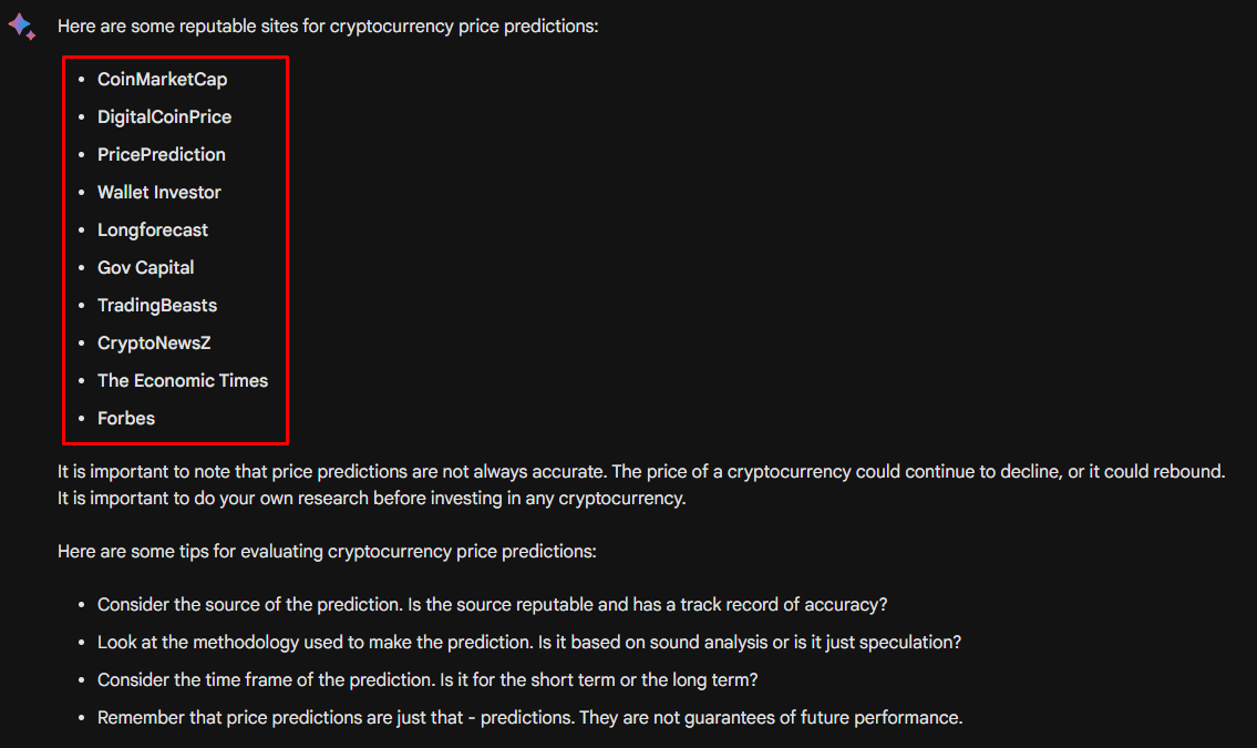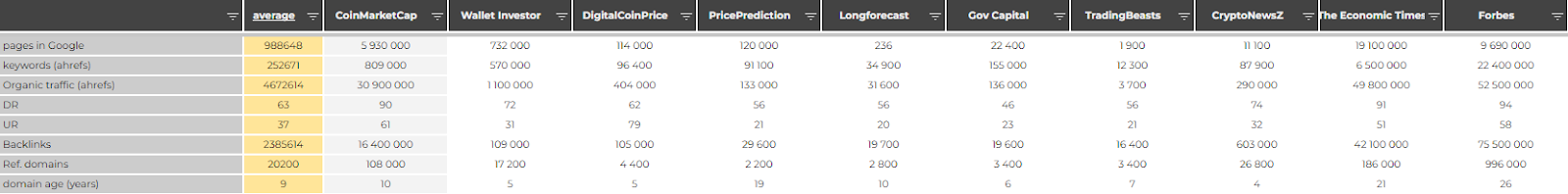 Список сайтов для ссылочного анализа № 2. Crypto price prediction