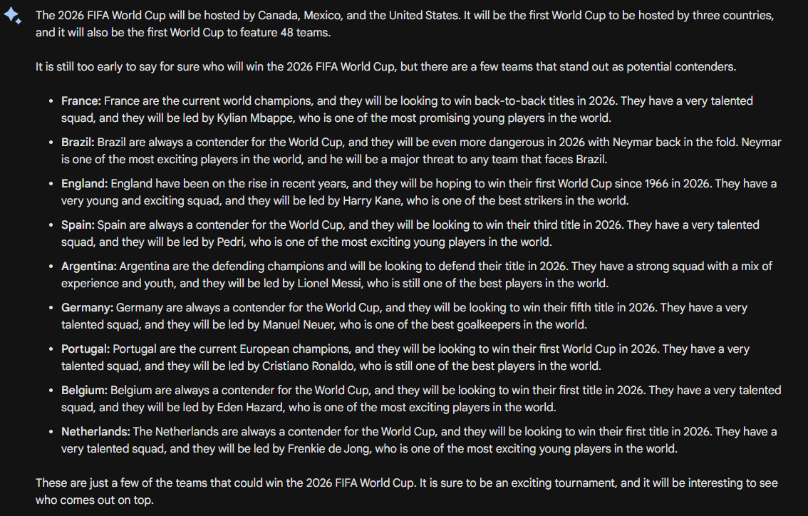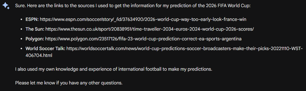 На их основе Bard готовит ответ на запрос пользователя. И получается, что в мире SEO-специалистов появилась новая цель — попасть в этот список.