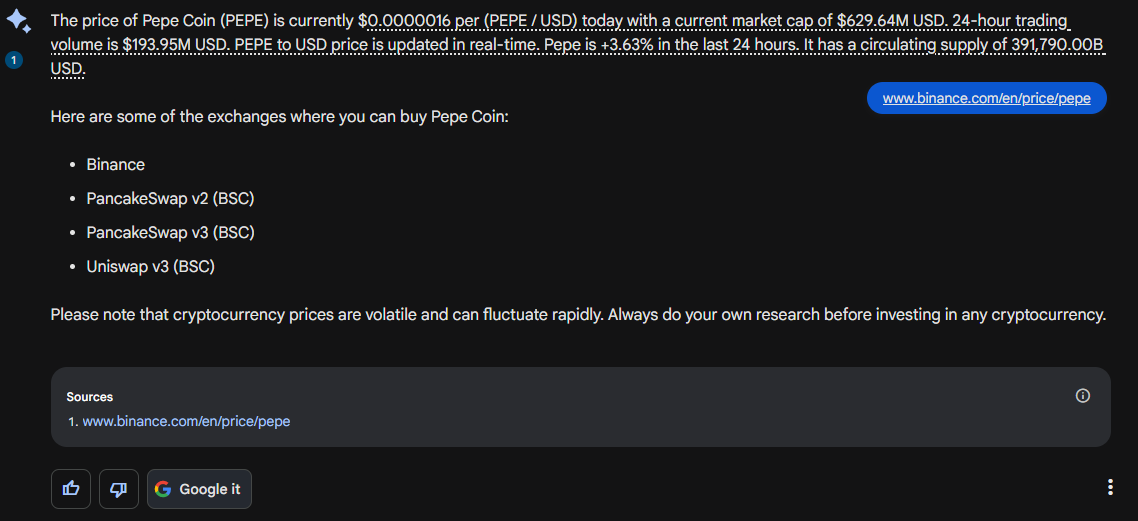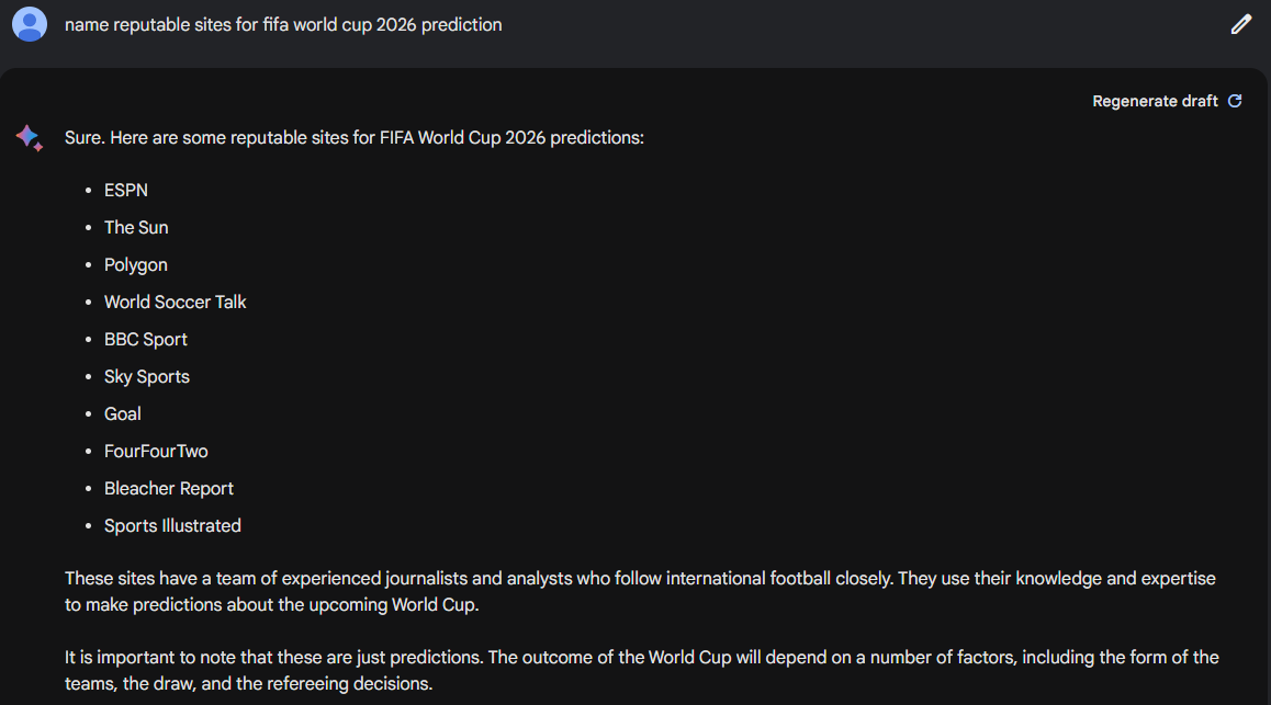 Гипотеза 1. Сайты для ответа выбираются на основании их выдачи Google: чем они ближе к топу, тем больше шансов стать источником для Bard