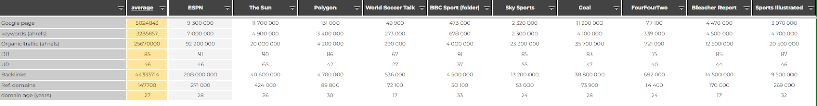 Список сайтов для ссылочного анализа № 1. FIFA World Cup