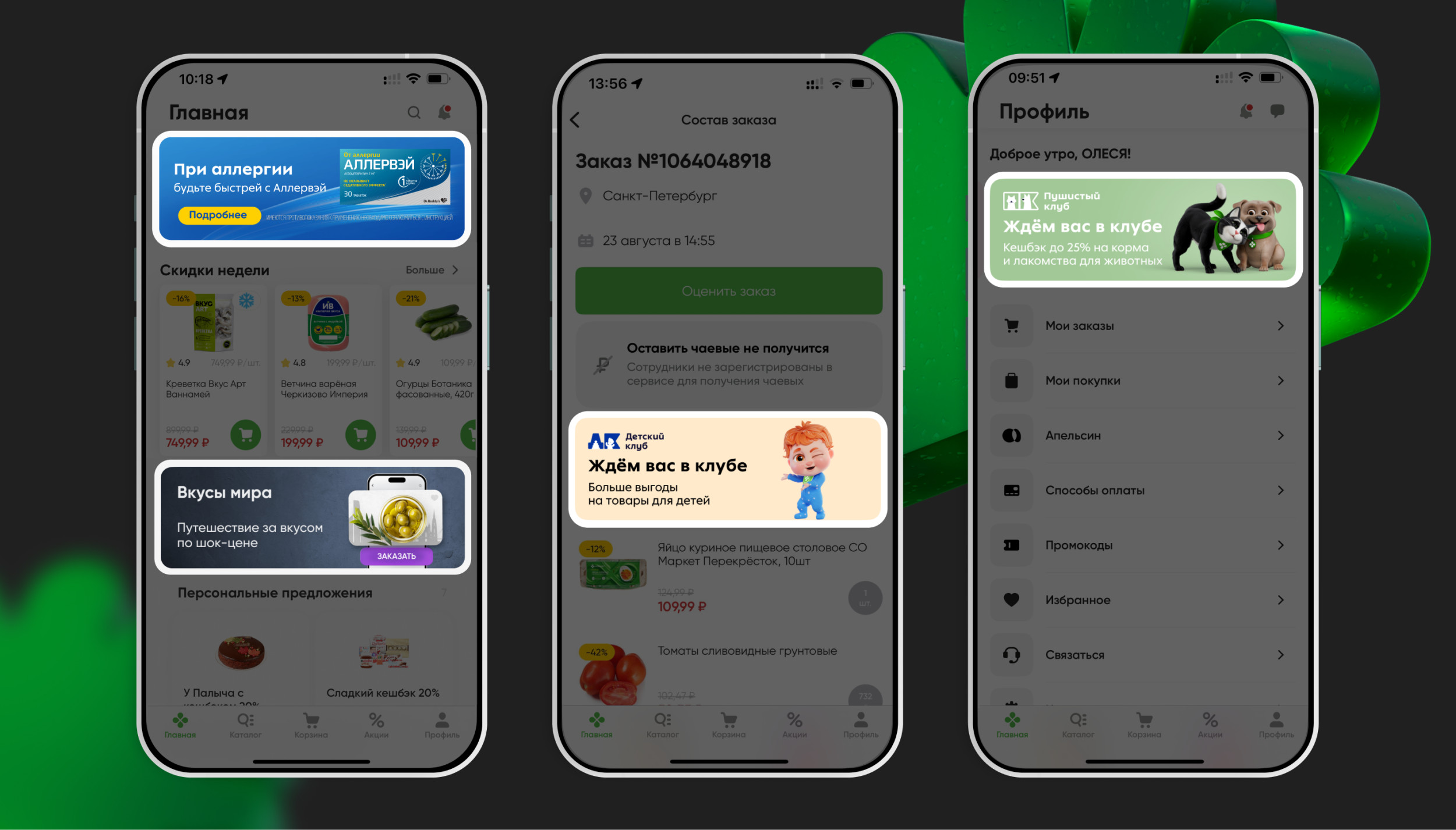 кампании в приложении супермаркета с охватом почти миллион покупателей в день.