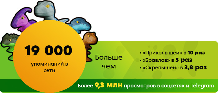 «Приколышам» (в 10 раз), «Бравлам» (в 5 раз) и «Скрепышам» (в 3,8 раза). Вuzz-эффект «Завров» в социальных
