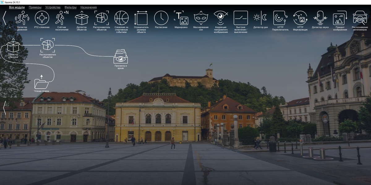 Ключ к масштабируемости — модульная структура. Вы сами выбираете функции: от простого просмотра до сложных сценариев с ИИ, вроде распознавания лиц, эмоций или номеров машин. Нужна запись по движению или круглосуточный мониторинг? Настройте цепочку модулей за пару минут, как конструктор. А если задач станет больше, Xeoma справится без замены оборудования — добавляйте серверы или облачные мощности.