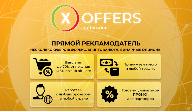 Партнерская программа Xoffers с прямыми офферами в вертикалях форекс, крипта и бинарные опционы