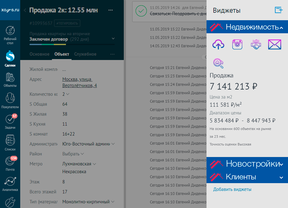 Работа данного функционала в amoCRM возможна только при наличии виджетов Xoms. Оставьте заявку, чтобы подключить все виджеты Xoms и повысить скорость и эффективность работы агентства недвижимости.