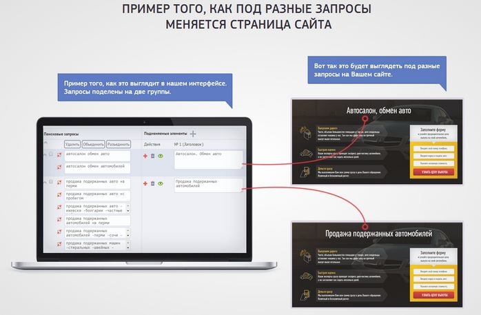Персонализируя контент (заголовки и содержание текста) под поисковый запрос, по которому ваш потенциальный клиент приходит на сайт, вы получаете так называемые «мультилэндинги».