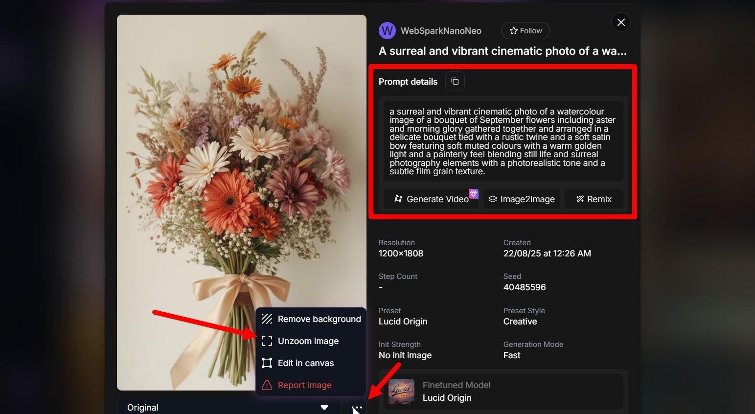 Сейчас доступно 8 моделей, каждая со своей специализацией. Например, новейшая Lucid Origin создает изображения в разрешении до 4K. Lucid Realism подойдет для кинематографичных кадров, а модели Flux лучше всего справляются с яркими и неоновыми сценами. Для детализированных работ с тщательной прорисовкой выбирайте Phoenix.