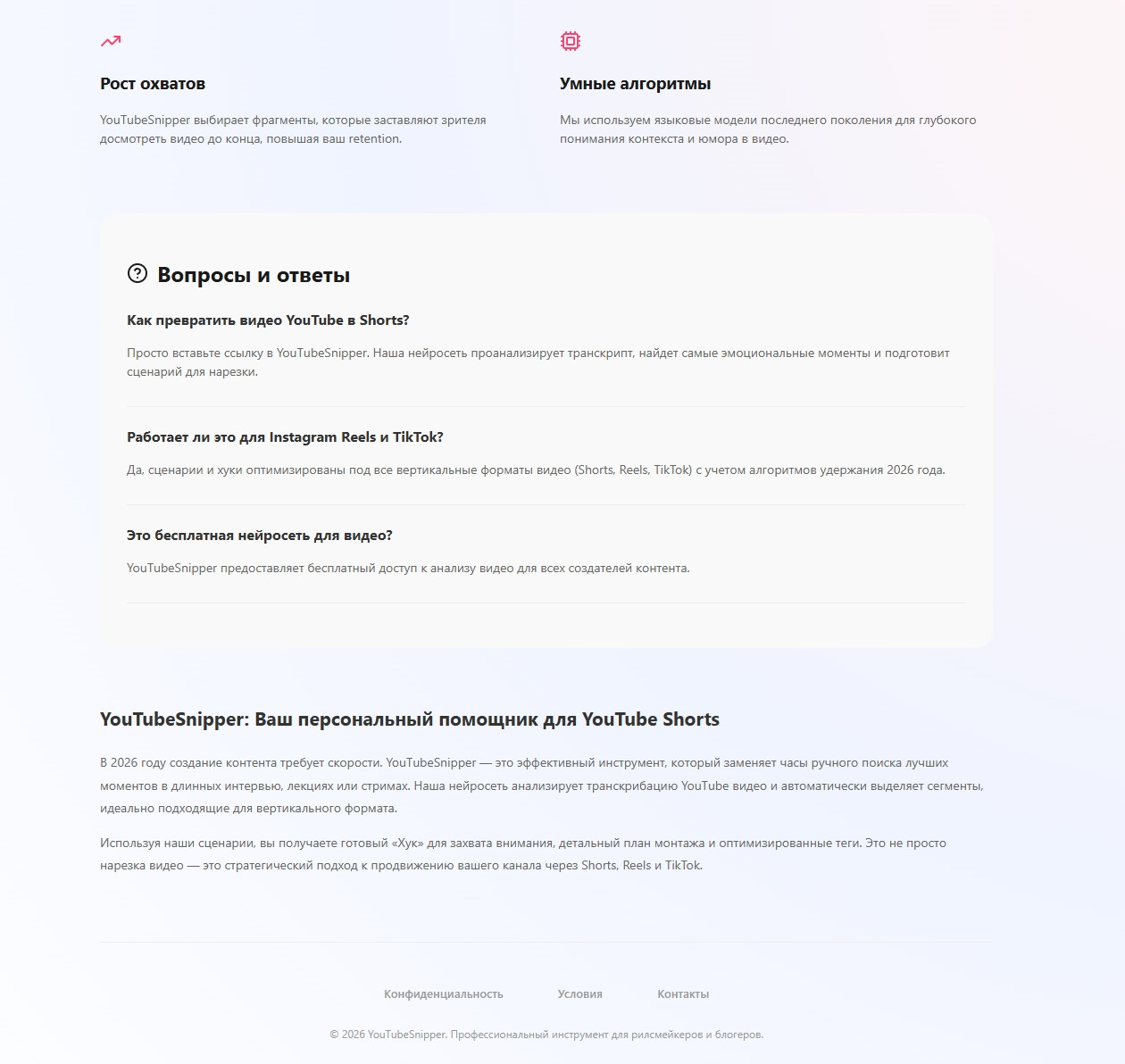 Всем привет!Меня зовут Илья, и я хочу поделиться историей создания и запуска своего проекта — YuTubeSnipperВсе началось с простой идеи: информации становится слишком много, а времени на её потребление — всё меньше. Я решил создать инструмент, который берет на себя рутину: фильтрует инфопоток, делает качественные ре