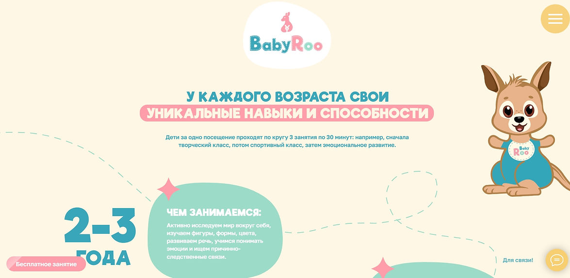 Сайт детского развивающего центра BabyRoo — Кейс брендингового агентства ZAMEDIA