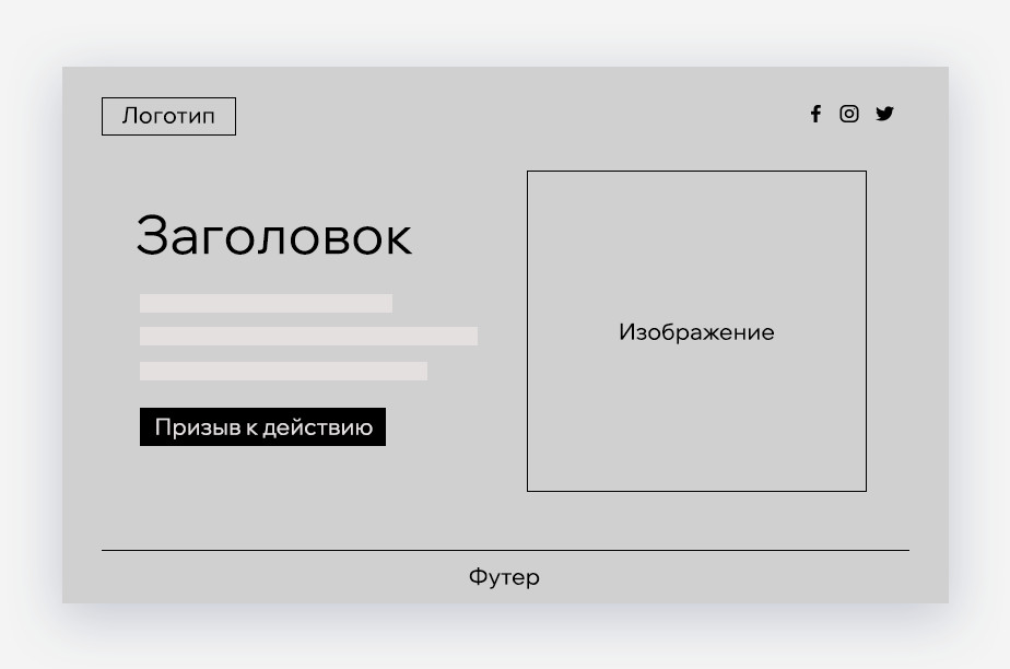 Шаблон обычного сайта: Шаблон лендинга: Разберем два главных вида посадочных страниц: — Страница для захвата лидов. Мини-сайт, который генерирует лиды, собирая данные о посетителях страницы. Обычно на таком сайте есть контактная форма: клиенты оставляют в ней информацию, которую можно использовать для дальнейшей коммуникации. Такие страницы помогут получить представление о том, кем являются ваши потенциальные клиенты и как до них достучаться. Взамен на оставленную информацию предложите пользователям что-то полезное. Это может быть купон на скидку, электронная книга, вебинар или эксклюзивные новости в виде рассылки. — Переходная страница. Лендинг, который ведет пользователей на страницу продажи или подписки. Обычно на таких страницах есть кнопка призыва к действию, которая сразу перенаправляет посетителей на оформление заказа. Этот вид лендинга часто используются на eCommerce и SaaS сайтах, специализирующихся на быстрых продажах. Выбирая подходящий вид посадочной страницы, думайте о своих целях. Хотите собрать контактную информацию? Предлагаете уникальную скидку? Формируете RSVP для мероприятия? Конкретная цель позволит создать максимально точную посадочную страницу и привлечь необходимую целевую аудиторию. — Направить пользователей к продукту: создавая лендинг с кнопкой призыва к действию — «Купить», можно направить пользователей сразу к покупке продукта или в онлайн магазин. — Предложить пробный период: если вы предлагаете услуги, используйте лендинг для оформления подписки на бесплатный пробный период. — Получить лиды из блогов: превратите читателей блога в лиды, побуждая их оставить контактную информацию в обмен на эксклюзивный контент. Например, бесплатную электронную книгу, буклет или вебинар. — Получить подписчиков для рассылки новостей: используйте посадочную страницу для подписок на новостную email-рассылку. Добавьте кнопку призыва к действию, например, «Подписаться» или «Зарегистрироваться», чтобы подтолкнуть пользователей к подписке. — Регистрация на мероприятия: привлекайте больше клиентов с помощью посадочной страницы для регистрации на мероприятие. Например, на вебинар или онлайн курс. — Создать пользовательский клуб: используйте лендинг пэйдж, чтобы привлечь пользователей к регистрации в платном членском клубе, который гарантирует им VIP привилегии. Например, эксклюзивный контент или специальные приглашения только для членов клуба. Сейчас у вас уже есть представление о том, что такое лендинг и почему он необходим для бизнеса. Пройдемся по базовым элементам дизайна посадочной страницы, чтобы знать, на что обратить внимание: 1. Сильные визуальные элементы Привлечь внимание пользователей помогут профессионально разработанный шаблон, качественное изображение, анимация или видео. Визуальные элементы должны вызывать эмоции в посетителях вашей страницы. Самый важный визуальный контент размещайте в верхней части страницы, которую также называют «обложкой». Это первое, что видит зашедший на лендинг клиент. Чтобы привлечь внимание пользователя и увеличить вероятность покупки, размещайте самый важный контент на «обложке». 2. Цепляющие заголовки От заголовка зависит, продолжат ли люди читать. Информация должна «цеплять» пользователя и соответствовать его интересам. Секрет хорошего заголовка в обещ