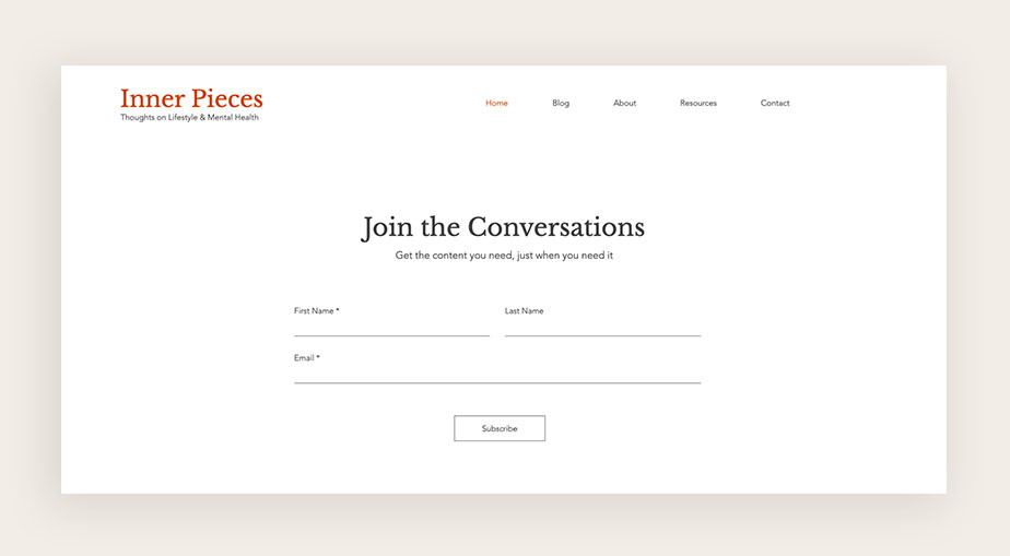 — Добавьте форму подписки. Ее можно внедрить на сайт в виде поп-апа на главной странице, отдельного лендинга или встроенного виджета в главном меню. Оставленные пользователями адреса автоматически добавляются в вашу базу для email-рассылок. Убедитесь, что вы сопроводили форму подписки сильным заголовком. Например, «Советы по уходу за кожей от профессионалов» или «Новая асана от Йога-Блога каждую неделю».