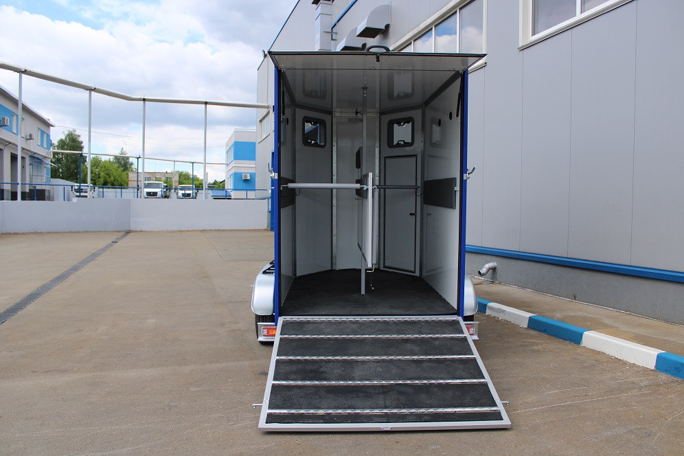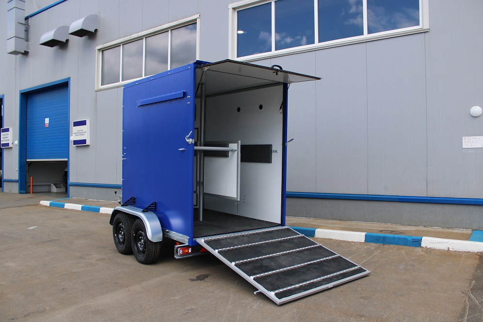 Специалистами завода LPRO был разработан и изготовлен коневоз для перевозки двух лошадей на шасси прицепа О2, с габаритными размерами 3100×1750×2400мм