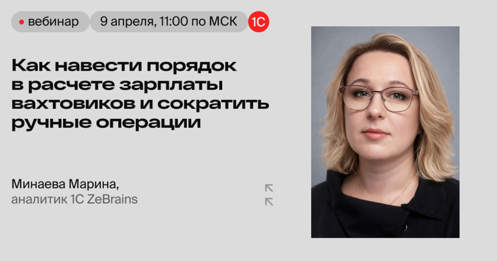 До 80% ручных операций в расчете зарплаты вахтовиков можно сократить благодаря правильной автоматизации в 1С. Учет при вахтовом методе особенно сложен: нужно точно отражать графики работы, время отдыха, междувахтовые периоды, удержания за питание и начисления, чтобы избежать ошибок и переплат. На вебинаре покажем, как выстроить эти процессы в 1С, упростить работу расчетных групп и сделать расчет зарплаты понятным и корректным.