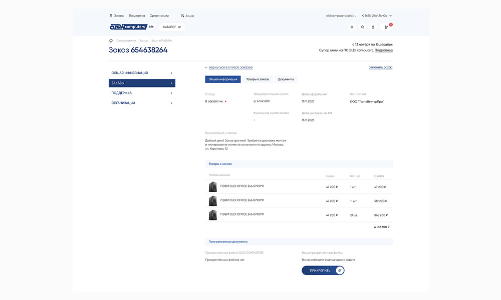 Работали над созданием интернет-магазина для компании OLDI Computers, одного из крупнейших производителей компьютерной техники в России. Изначально перед командой ЗЕКСЛЕР стояла довольно интересная задача — создать закрытый сайт с проработанным личным кабинетом для юридических лиц, то есть для клиентов и партнеров в B2B-сегменте. Что это значит? Содержимое сайта должно было быть доступно только по предварительному одобрению, а это, в свою очередь, означало, что процесс регистрации и получения доступа были тщательно контролируемы. Для этого в проекте предусмотрели систему заявок и утверждений.