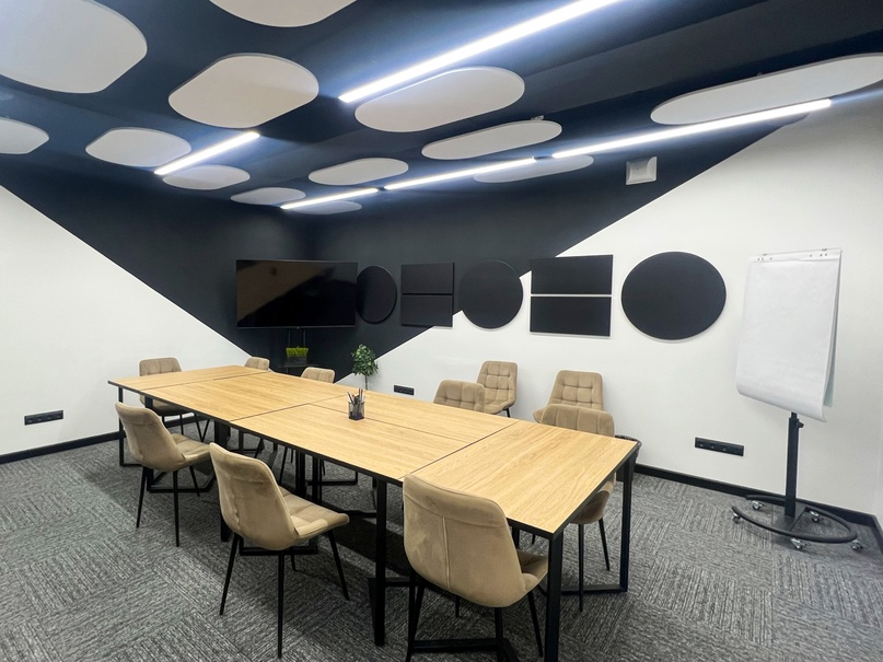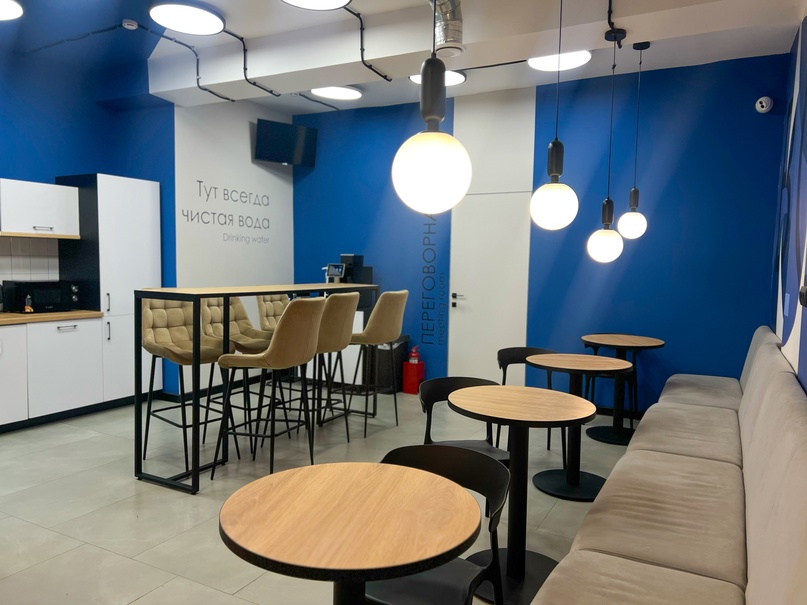 У нас есть отдельное помещение для работы, а также общее пространство, где можно пообедать, отдохнуть, провести презентацию, обменяться опытом с коллегами из других компаний.