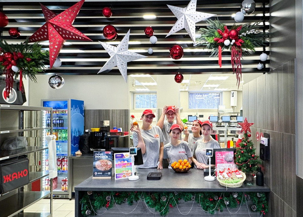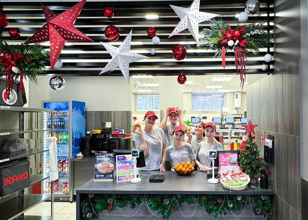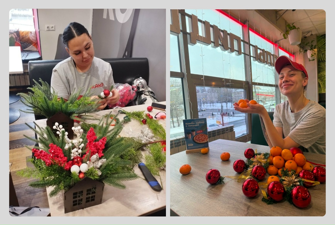 В преддверии Нового года мы постарались создать в кафе особую праздничную атмосферу: украсили залы и порадовали сотрудников сладкими мандаринами.