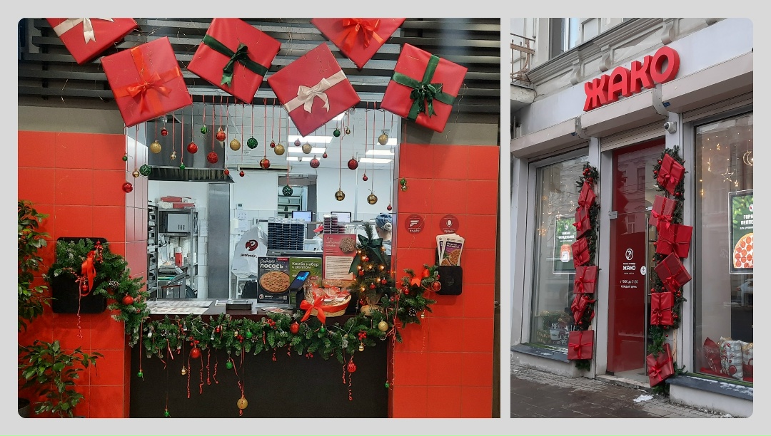 Нам важно, чтобы к Новому году кафе выглядели празднично и создавали настроение посетителям и прохожим. Поэтому ежегодно всей командой мы приступаем к украшению кафе.