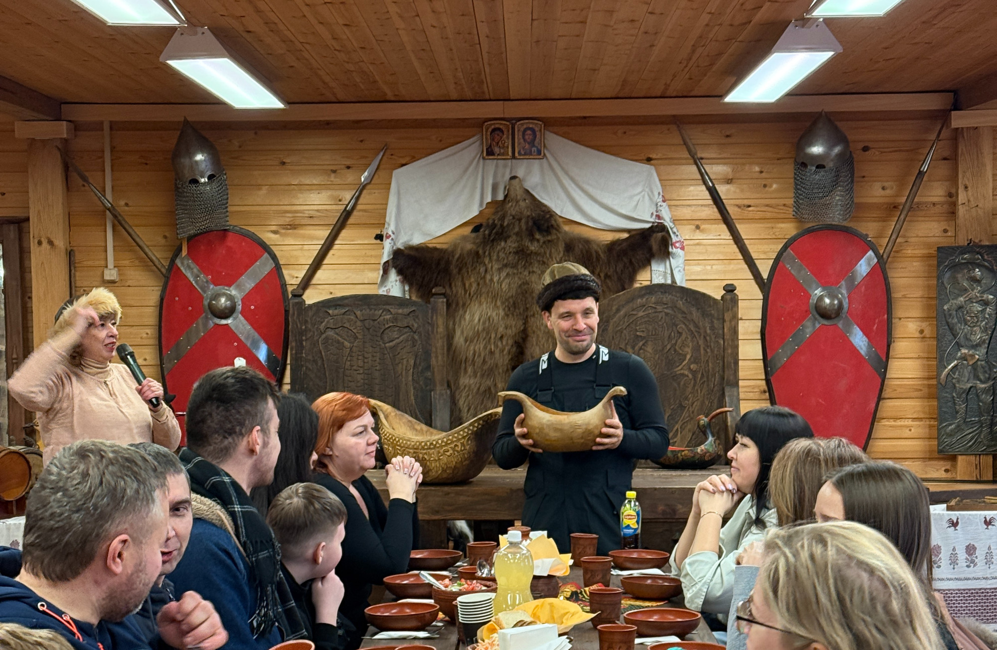 В Слободе нас ждала насыщенная программа. Нам показали ладью в процессе строительства и рассказали: — как создаются древнерусские ладьи и почему при их строительстве важно соблюдать исторические каноны; Особенно запомнилась история ладьи с головами Змея Горыныча, которая принимала участие в международной научно-исследовательской экспедиции «Путь Рюрика». Судно прошло Скандинавию и Прибалтику, пережило поломку в открытых водах, шторм и даже было принято в тумане за морского монстра. Эти события освещались в новостях — фрагменты сюжетов нам показали прямо во время экскурсии. Большое впечатление произвело посещение Музея русского богатырства в Княжьем тереме. Мы увидели коллекцию доспехов, оружия, одежды и бытовой утвари, а также посетили музей под открытым небом, посвящённый истории древнерусского боя. Мы водили хоровод вокруг костра, гуляли и фотографировались на фоне избушек и теремов, а желающие даже оседлали лошадь. Особое праздничное настроение создали Дед Мороз-воевода, Снегурочка-поляница и очаровательная Баба-яга. Попробовали мы свои силы и в древнерусских забавах: Завершением дня стал пир в Богатырской гриднице. Трапезничали из глиняной древнерусской посуды ухой из судака, соленьями, блинами, пирожками, шашлыком и ароматным травяным чаем. Чтобы сотрудники могли полностью сосредоточиться на впечатлениях и отдыхе, мы заранее продумали все детали: забронировали мероприятие и организовали автобус для подвоза и развоза команды. Благодаря этому день прошёл без спешки, ожиданий и организационных накладок. Мы верим, что сильная команда строится не только на профессиональных навыках, но и на общих ценностях, умении учиться, быть открытыми новому опыту и выходить за рамки привычного. Если вам близок такой подход, присоединяйтесь к нам: А я прощаюсь с вами до новых встреч в блоге компании. Всего доброго!