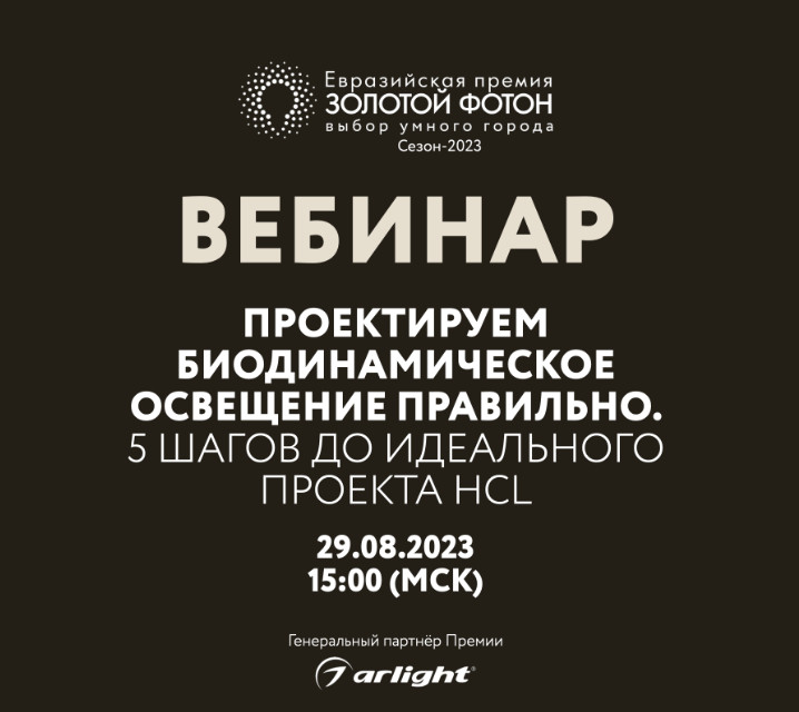 Биодинамическое освещение — популярный тренд среди тех, кто заботится о своем здоровье и самочувствии. Вебинар входит в традиционную ежегодную серию обучающих онлайн-мероприятий. Ведущие специалисты по светотехнике и светодизайну поделятся информацией о человеко-ориентированном освещении.