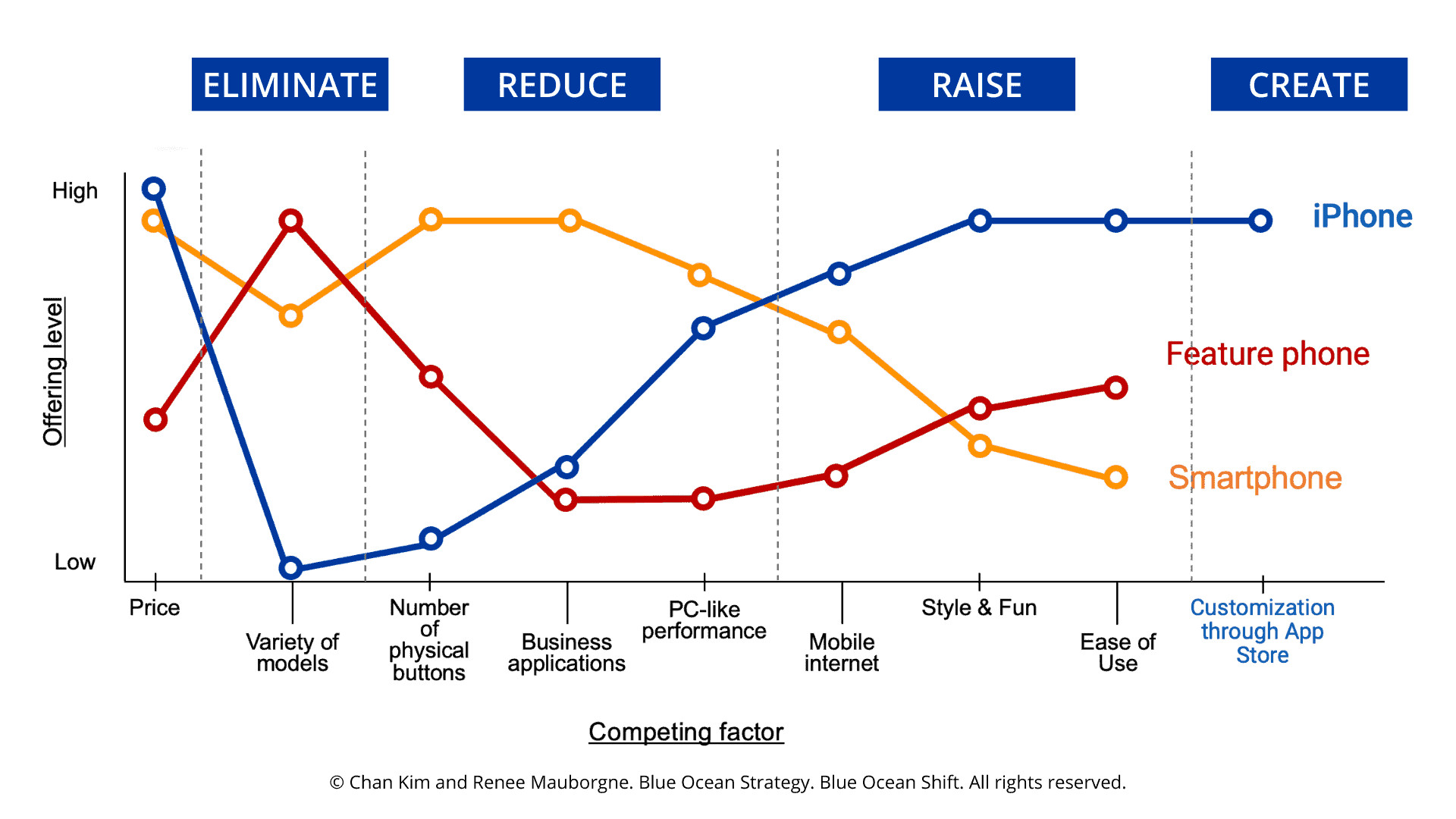 В своей книге «Blue Ocean Strategy» авторы описали несколько инструментов для поиска голубого океана на вашем рынке.