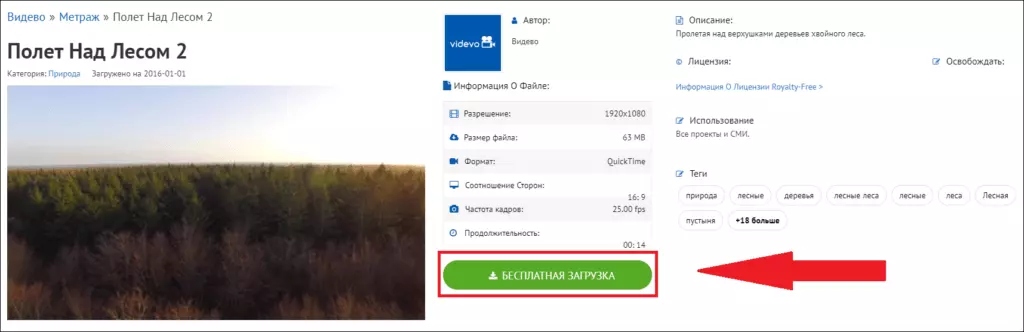 Чтобы скачать видео, выбираем и открываем его. Жмём кнопку «Бесплатная загрузка» и загружаем видео.