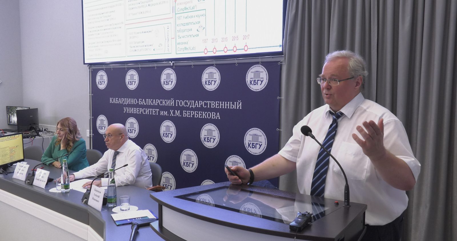 Затем Алексей Иванович выступил перед преподавателями и студентами КБГУ с лекцией на тему «Экосистема технологического развития СПбПУ „Передовые цифровые и производственные технологии“. Цифровой инжиниринг на основе технологии цифровых двойников. Модель взаимодействия СПбПУ с высокотехнологичной промышленностью». Проректор СПбПУ по цифровой трансформации поделился опытом ПИШ СПбПУ по применению новаторских подходов для подготовки инженерных кадров.