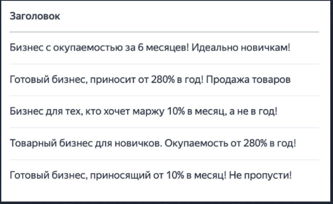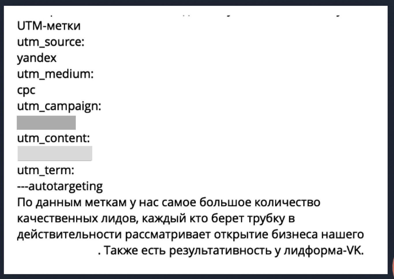 Началось все с этого сообщения: И правда, если вы обратите внимание и посмотрите на то, что делает ваш подрядчик, вы скорее всего заметите: Давайте остановимся на том, что для успешной рекламной кампании франшизы, вашему директологу необходима глубокая аналитика. На практике то означает, что ваш специалист должен не только знать с каких кампаний самая дешевая цена лида, но и понимать где самый дешевый квалифицированный лид. Технически это можно делать либо передавая ему выгрузки в ексель по уем метками, либо, что лучше всего, делать интеграцию вашей CRM системы с кабинетом Я.Директ. Обратите внимание на цифры внизу. Если вы не сильно разбираетесь в кабинете, то сейчас я объясню вам, что тут происходит. В первом столбе вы видите стоимость лида. Это то, к чему мы все привыкли, просто сколько стоит отправка формы пользователем с сайта. Обратите внимание, у второй кампании самая низкая стоимость! И третья по счету — тоже не отстает! Классический рекламщик делает выводы именно на основе этих цифр, часто, эти выводы неверные. Например, у первой рекламной кампании цена лида в два раза выше средней, но она дает самый чистый и заинтересованный трафик, в 2-3 раза ниже цена реальной сделки. Почему так произошло? Что отличает эту кампанию от других? Исключительно посылы в заголовках рекламных креативов. Забудьте о широких привлекательных заголовках! Забудьте о красивых цифрах заработка в месяц! Ни в коем случае не гонитесь за хорошей кликабельностью! Все очень просто, алгоритм Яндекса в РСЯ, работает таким образом, что привлекает вам именно тех пользователей, которые чаще кликают на ваше объявление. Как вы думаете, насколько многим людям будет интерес заработок в 300к на точке шаурмы? Насколько люди будут падки на слова «выгодная, окупаемая, прибыльная»? А у скольких из них реально будет интерес к созданию бизнеса и вложения пару миллионов на паушальный взнос? Задача сделать максимально непривлекательные креативы, в идеале с дорогой ценой клика, использовать страшные слова — РОИ, возврат инвестиций, окупаемость, безубыточность. Страшные слова в нашем случае это те, которые будут непонятны широкому пласту аудитории, и, среднестатистический любитель легких денег по нашему объявлению просто не кликнет. В то время как предприниматель, ищущий куда вложить пару миллионов, именно это и ищет в продукте. Теперь у вас на руках есть связка "Сильная гарантия"+"сильная по нише цифра". Все что вам нужно сделать это совать эти данные везде! Эти данные, должны быть крупно указаны в заголовке на первой странице вашего сайта, эти данные должны быть в заголовках всех ваших креативов. Да, у вас уже буду не красивые заголовки «Выгодная франшиза 2025», а страшный «Франшиза кофе с собой. Взнос от 800к, окупаемость 25%/год» но посмотрите, какие результаты приносят эти «страшные» слова: КАЖДЫЙ кто берет трубку, в действительности рассматривает открытие нашего бизнеса! Вроде бы мелочи, ну всего то, поменяли какие то заголовки, но именно из этих мелочей и складываются отличные маркетинговые показатели. Вот еще интересный пример, на скриншоте статистика франшизы ИТ-решения. Они использовали двух подрядчиков и вот данные по назначенной встрече каждого из них: Позволю вам самим догадаться, какая из этих цифры принадлежит автору статьи, а какая другому подрядчику. Да, совсем немного 